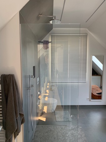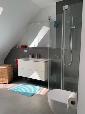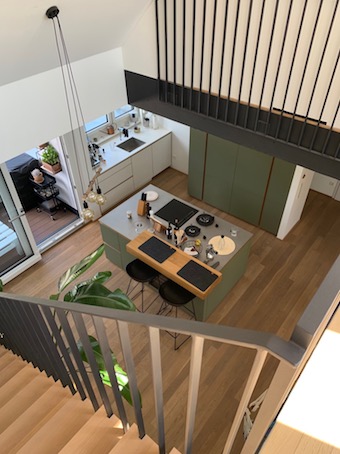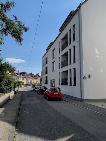 Das 2019 errichtete Haus befindet sich in einer Straße in deren Umgebung gewachsene Wohnstrukturen aus den 1930 ger Jahren vorherrschend sind. Da die Einbahnstraße leicht abwärts führt, hat man schon bei der Anfahrt zum Haus hin schöne Sichtbeziehungen auf die umliegende Hügel.
