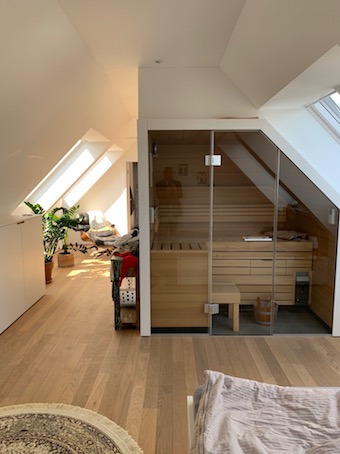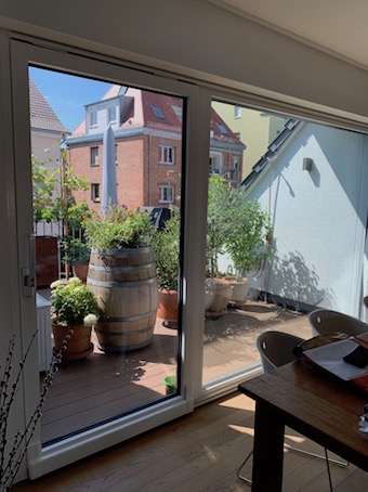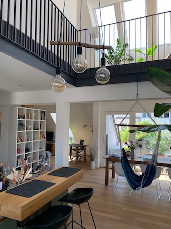 Die Wohnung ist über die obersten beiden Stockwerke verteilt. Die Aussicht ist ungetrübt, erhaben und sehr selten.