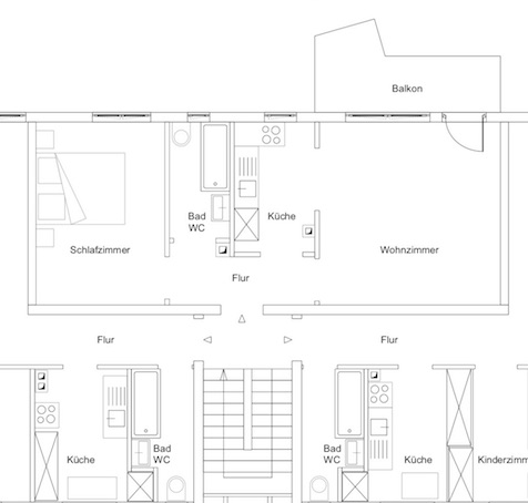 – Alle Zimmer haben Zugang zum Flur, das Wohnzimmer hat